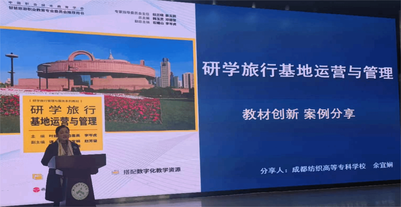 余宜娴副教授代表教材编写团队,受邀参加2023年12月1日在浙江旅游职业学院举办的旅游职业教育多维创新实践案例分享活动,该活动同时向全国近三千名旅游类职业院校教师进行网络直播,分享教材创新经验案例。