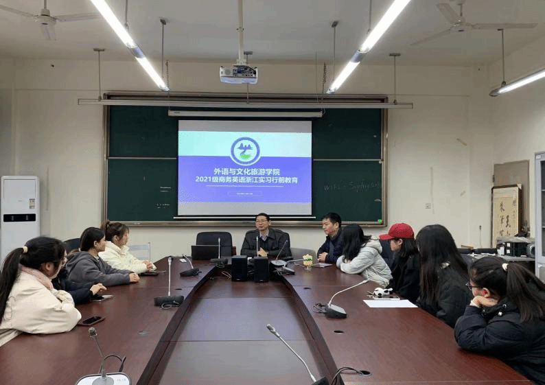 12月15日,商务英语专业在学院会议室B401召开2021级学生赴浙江永康实习行前会,对本批次前往浙江永康实习的学生进行安全教育和实习就业辅导,引导学生做好实习前的准备工作,增强学生对岗位实习的理解与认识。学院党总支书记樊廷友,副院长梁金柱、英语专业教研室主任胡贞贞及辅导员蔺珍参加了本次会议。