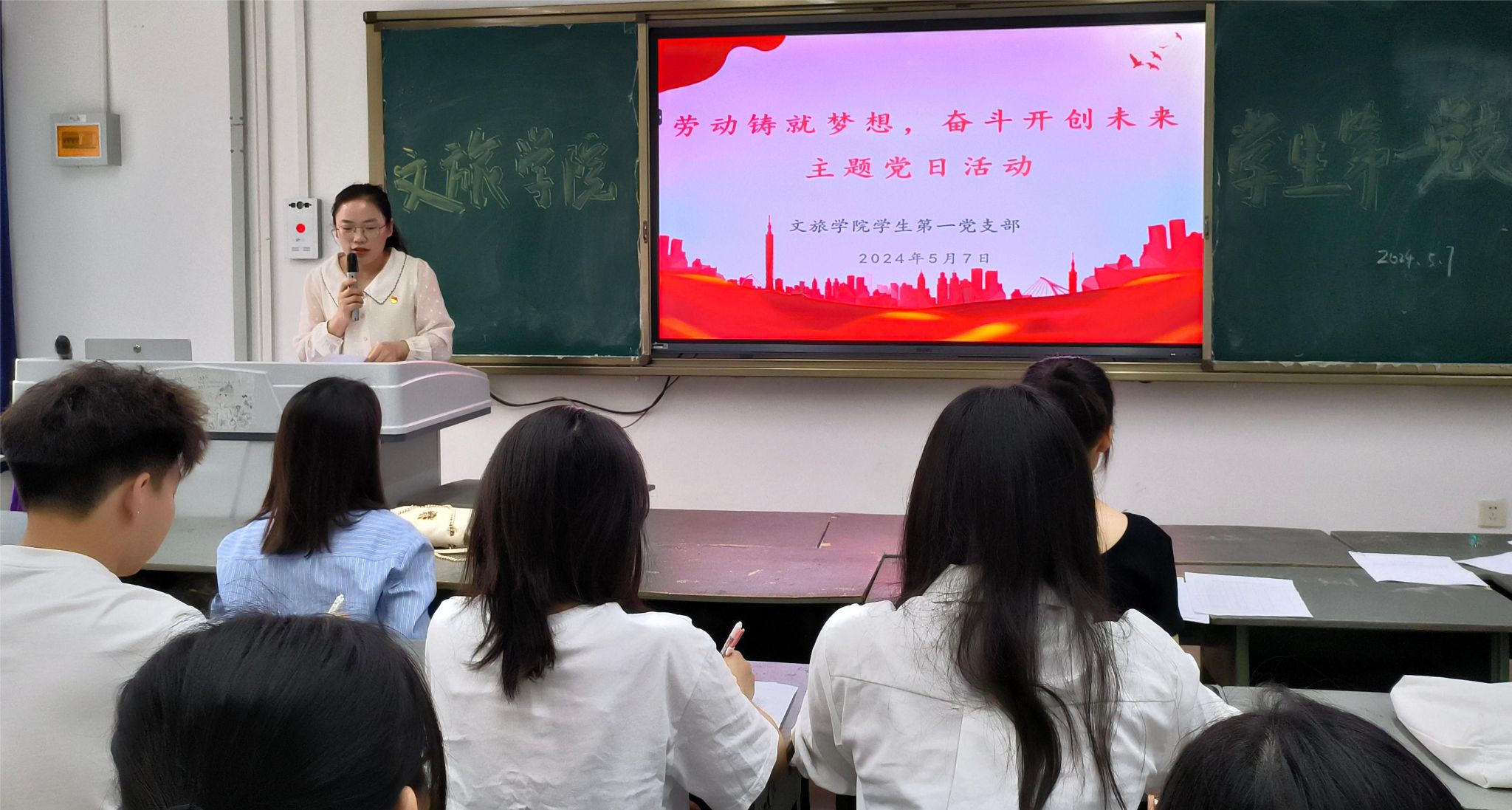 为弘扬劳动精神、增强劳动意识,引导广大学生崇尚劳动、尊重劳动、热爱劳动,争做新时代的奋斗者。文旅学院第一党支部于5月7日在致知楼A501开展了“劳动铸就梦想,奋斗开创未来”党日主题活动。学生支部委员、全体学生党员和入党积极分子参加活动,活动由学生党支部书记蒋平主持。