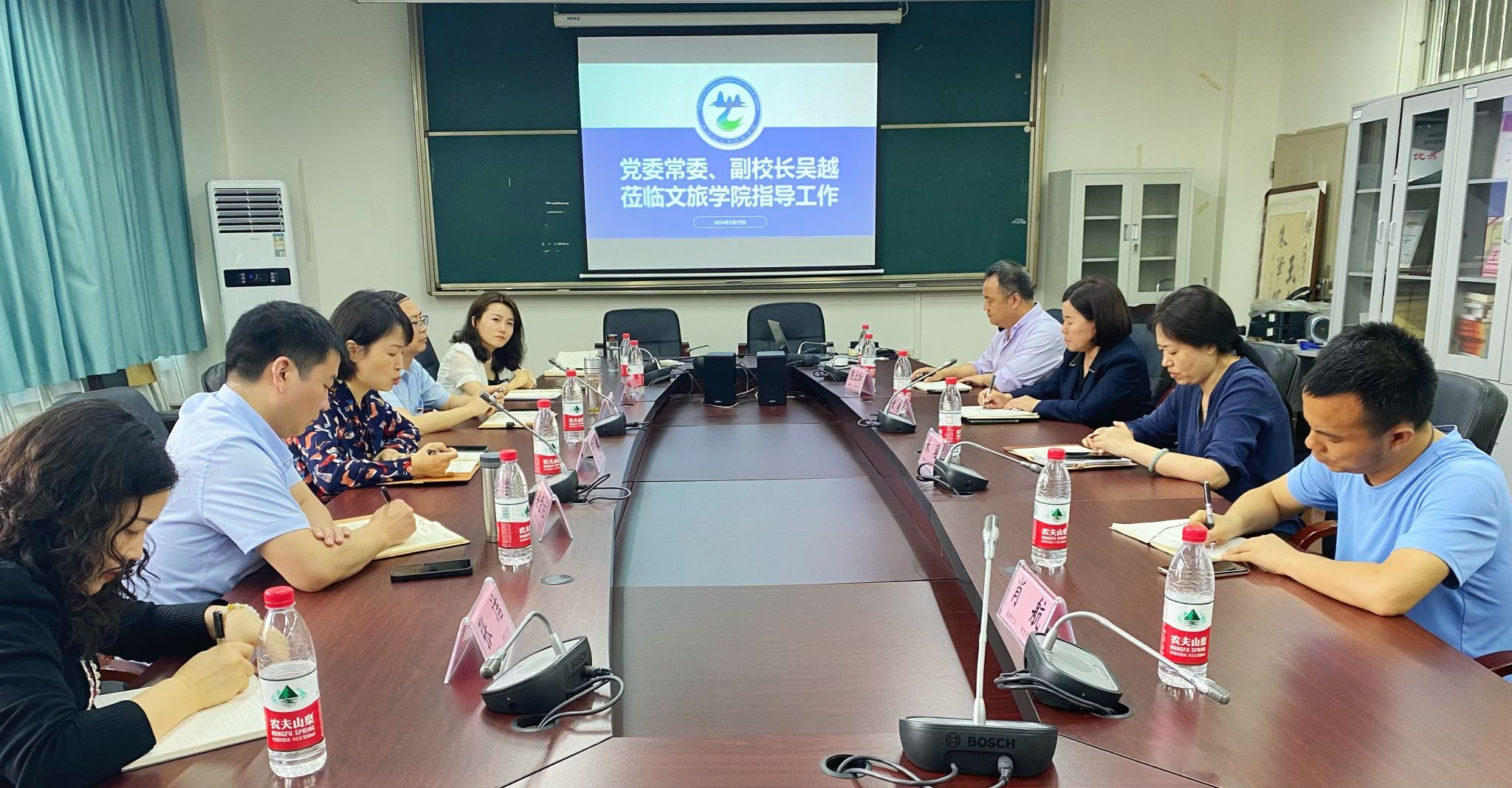 5月29日下午,学校党委常委、副校长吴越带队到文旅学院调研并指导工作,学校党政办主任朱瑶、安全与后勤保障处处长陈立加、建设处综合管理科科长崔伟陪同调研,文旅学院科级以上干部和专职组织员参加调研会。