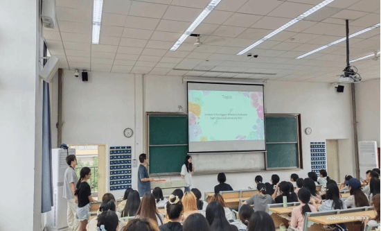活动以英语自我介绍开场,随后通过单词接龙小游戏活跃气氛,助力同学们锻炼英语能力。自由讨论环节,师生围绕暑期实践、新学期规划、课程体验等话题交流,外教分享经验提建议,指导老师鼓励同学们勇敢表达。