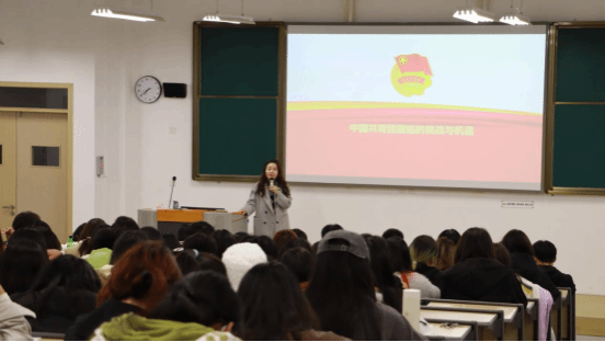 随后,王珍珍解读共青团组织定位与任务:作为党领导的青年群团组织,是青年学习理论的学校、党的助手和后备军,依托严密体系承担引领、动员、服务青年职责。新时代明确“培养建设者和接班人、巩固党执政青年基础、围绕中心服务大局”三大任务。