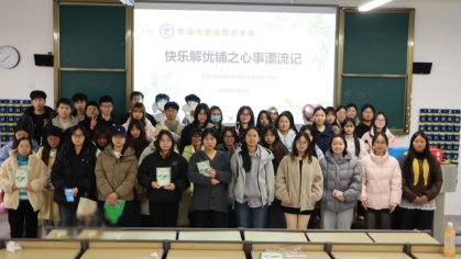 为促进学生心理健康发展,提升情绪管理与自我认知能力,营造积极向上的校园心理文化氛围,11月26日,外语与文化旅游学院心理部在邛崃产教园区知著楼C202教室举办了“快乐解忧铺之心事漂流记”心理健康主题活动。