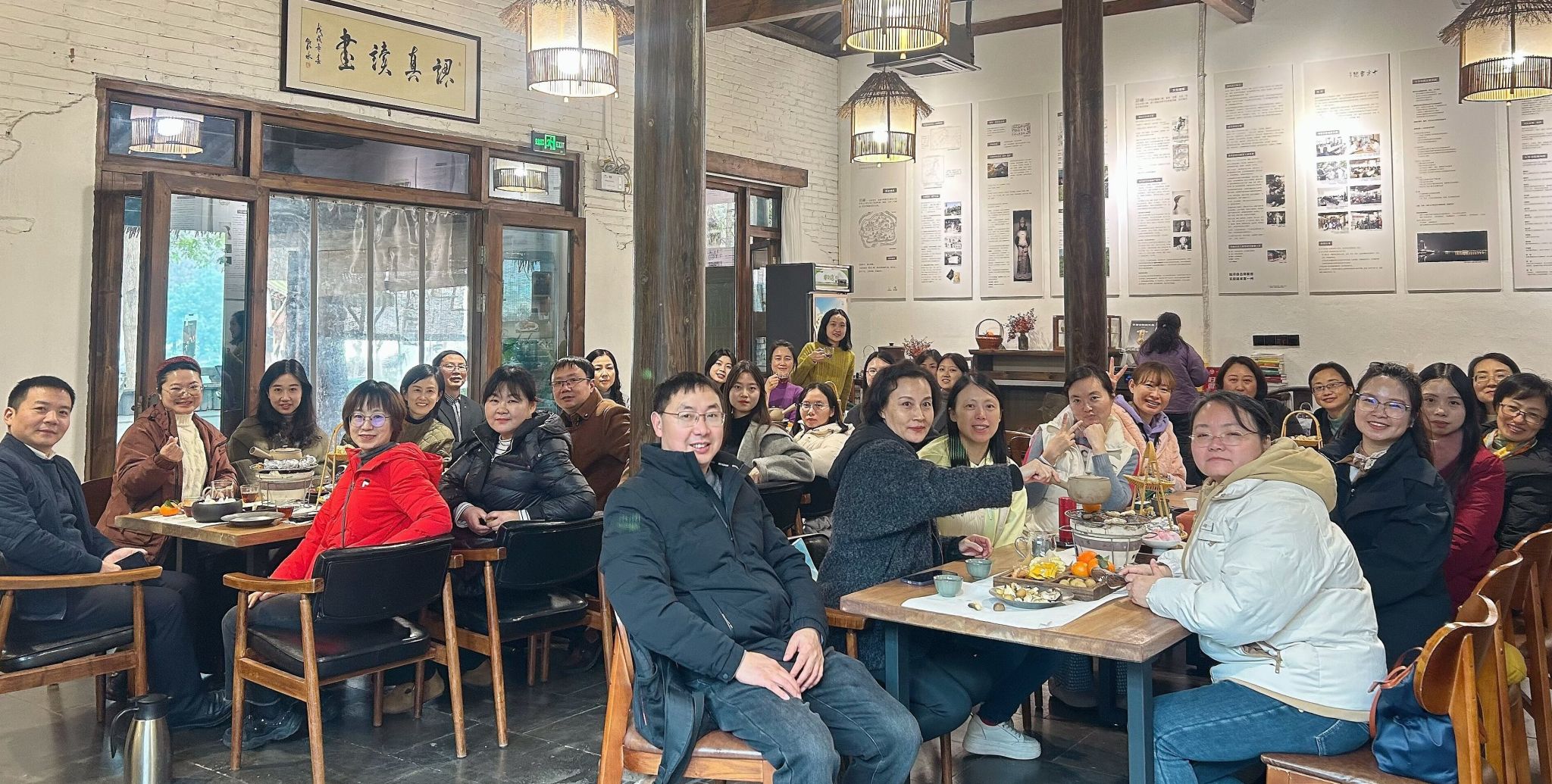 参观结束后,教师们前往园区茶室开展围炉煮茶活动,在亲手煮制、品饮邛崃特色茶饮的过程中感受传统茶文化,并交流茶与非遗、文旅产业的融合路径。茶歇后,学院组织专题讨论,全体教师围绕学校新春晚会的演员选拔、节目构思及排演安排建言献策,凝聚了团队智慧,明确了筹备初步方向。