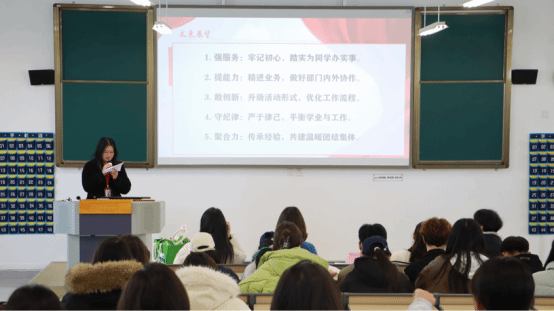 各部门依次进行汇报,全面总结了2025年度在活动组织、服务同学、队伍建设等方面的工作亮点与成效,深刻剖析了存在的不足,并详细阐述了2026年的工作计划与发展目标。