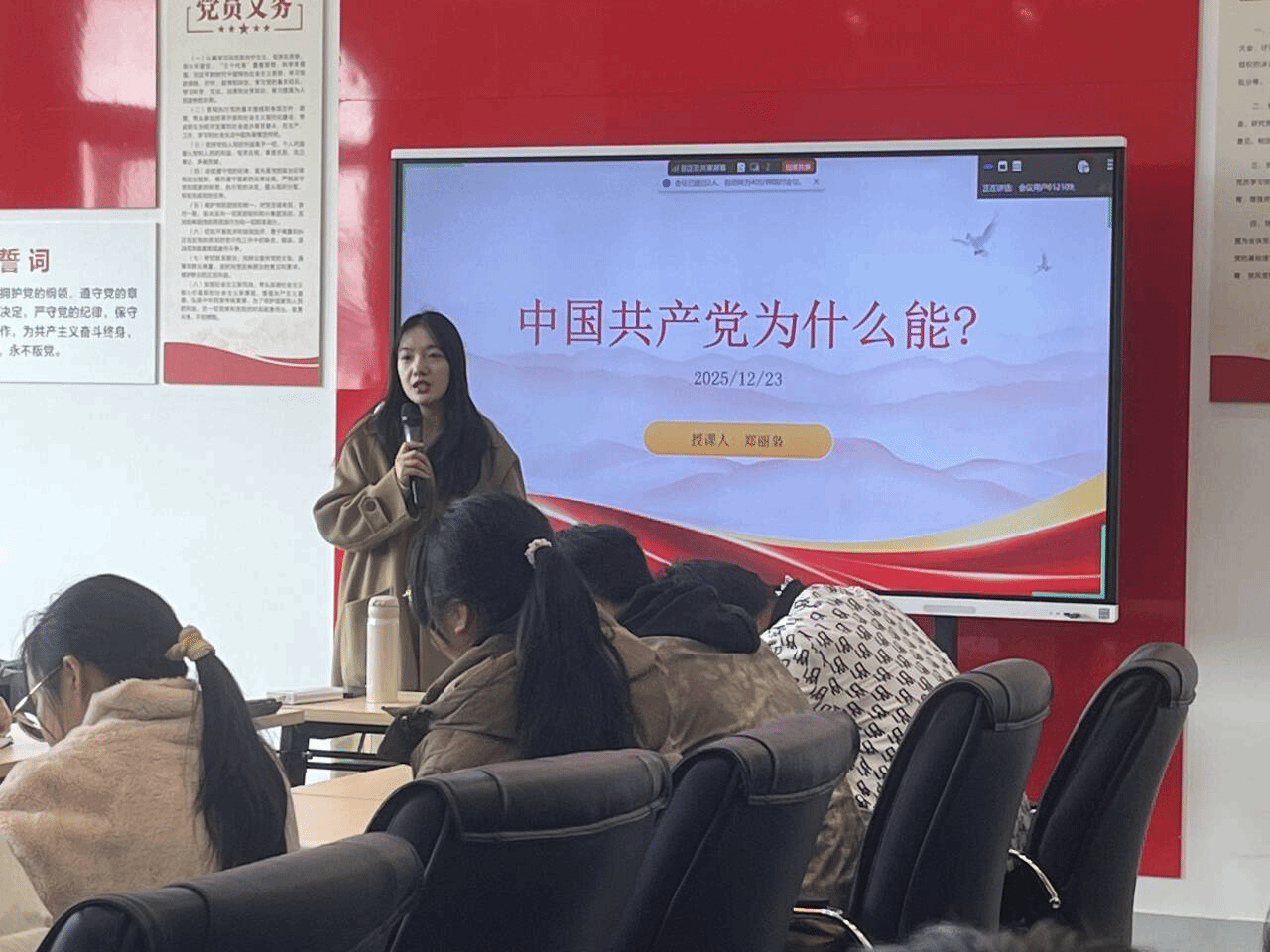 为深化支部党员对党的百年奋斗历程与执政根基的认知,筑牢理想信念根基,12月23日,文旅学院学生党支部于知著楼A405开展“中国共产党为什么能”专题党课。本次党课特邀学校马克思主义学院郑丽枭老师主讲,学院学生第一、第二党支部全体党员、发展对象及积极分子到场参加。