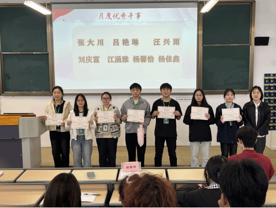蒲荔塬围绕四月留干考核、春季运动会、游园会等重点工作进行安排,强调学生工作既要锚定正确的发展方向,明确工作目标和重点;更要脚踏实地、精耕细作,将每一项工作落到实处。表彰环节中,老师为3月工作中勤勉务实、锐意进取、表现突出的优秀干部、干事颁发荣誉证书,以树立标杆,激励全体成员见贤思齐、奋勇争先。