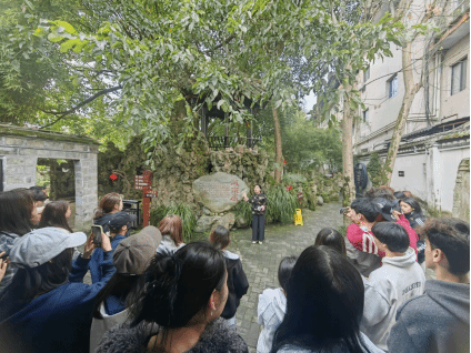 为推进“匠心茶语”育人品牌建设,4月1日,项目负责人吕晞梅带领2025级酒店管理与数字化运营专业学生,赴邛崃文君井景区开展“寻迹文君故里,体悟茶艺匠心”实践教学。活动特邀非遗传承人、企业导师王秋霞主讲,让学生在实景中感受茶文化底蕴与技艺之美。