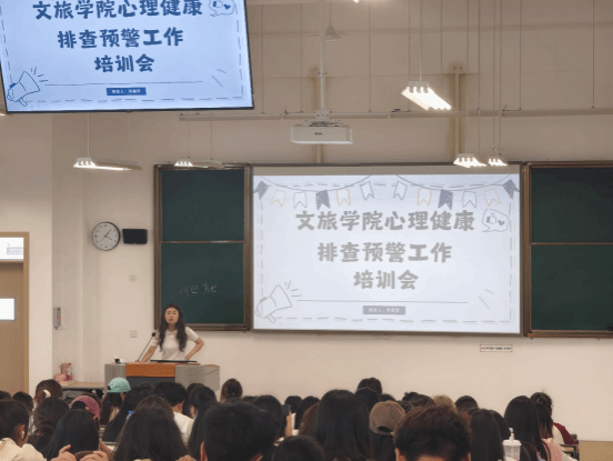 为进一步落实“健康第一”教育理念,织密学院心理安全防护网,切实提升基层学生骨干心理识别与干预能力,4月14日下午,文旅学院于知著楼D102教室组织召开“心理健康排查预警工作专题培训会”。本次培训由学院专职辅导员刘嘉欣主讲,大一、大二各班寝室长、心理委员及学院心理部干部干事共同参加。