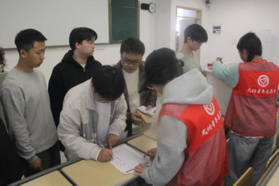 活动现场,志愿者们身着统一红色志愿马甲,以饱满热情投入服务。在物品寄存处、考生签到点等关键岗位,大家分工明确、认真负责:耐心引导考生核对信息、有序签到,细致整理、规范存放随身物品,全力维护考场周边秩序。志愿者们用高效严谨的工作态度、贴心周到的服务,为考生营造安心、舒心的考试环境,助力大家轻装上阵、从容应考。