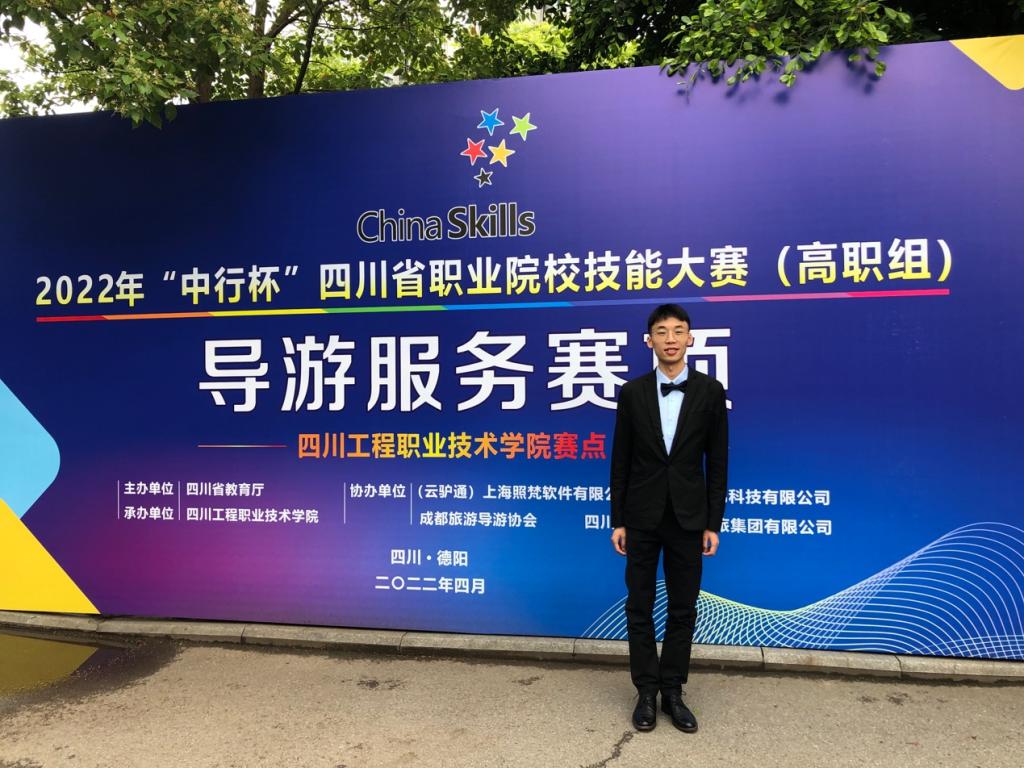 4月15-16日,由四川省教育厅主办的2022年“中行杯”四川省职业院校技能大赛(高职组)导游服务赛项在四川工程职业技术学院举行,文旅学院派陈倩老师带队参加了比赛。经过激烈角逐,我校旅游管理202班雷天雨同学荣获一等奖。