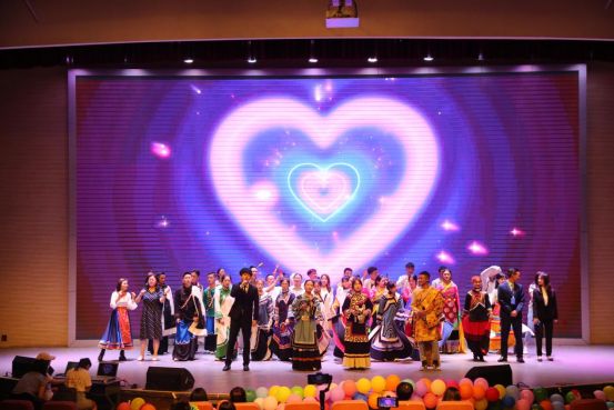晚会在大合唱《相亲相爱一家人》中落下帷幕,现场老师以及晚会表演人员一同登上舞台,欢歌笑语,共度美好时光。无论哪个民族,都是中华民族,在成纺大家庭中,每个民族的同学都是这个大家庭中的一员,都是相亲相爱的一家人。