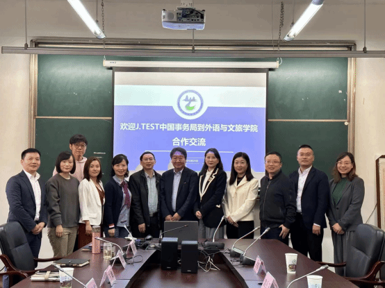 10月25日,实用日本语鉴定考试(J.TEST)中国事务局总代表董唯诚先生一行到外语与文化旅游学院进行了交流访问。学院党总支书记樊廷友、副院长王敏、党总支副书记王珍珍、副院长梁金柱和日语专业骨干教师与来访嘉宾进行了广泛深入的交流,双方就在我校设置J.TEST考点等校企合作项目达成了初步的合作意向。