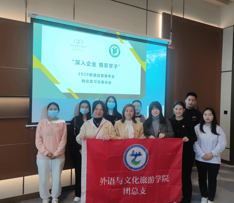 哪里有团员,哪里就有团组织,哪里就有组织生活。学校2022年学生工作重点指出,要切实加强新形势下我校学生思想政治教育和日常行为管理工作,强化团员意识和团员示范作用。由于学院学生酒店管理专业“2+1”的培养模式,大三的同学需要在毕业前进行顶岗实习,按照原来班级团支部的组织模式,就会造成学生团建工作很难开展。文旅学院借助大三酒店管理专业学生实习的契机,创新基层团组织模式,探索将团小组组织引进实习单位的模式。王珍珍书记一行,去往酒店管理专业实习单位海湾大酒店。