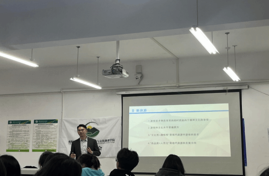 宣讲会伊始,苑老师提出了“何为现代旅游”的问题,同学们也积极参与了探讨。苑老师提到,新时代游客追求物质享受的同时更趋向于精神文化的享受,游客的文化水平普遍提升,现代旅游中的游客是追求“文化性+趣味性”,现代旅游的发展方向是“高品质+人性化”。通过苑老师的讲解,同学们更深入地了解现代旅游的内涵。