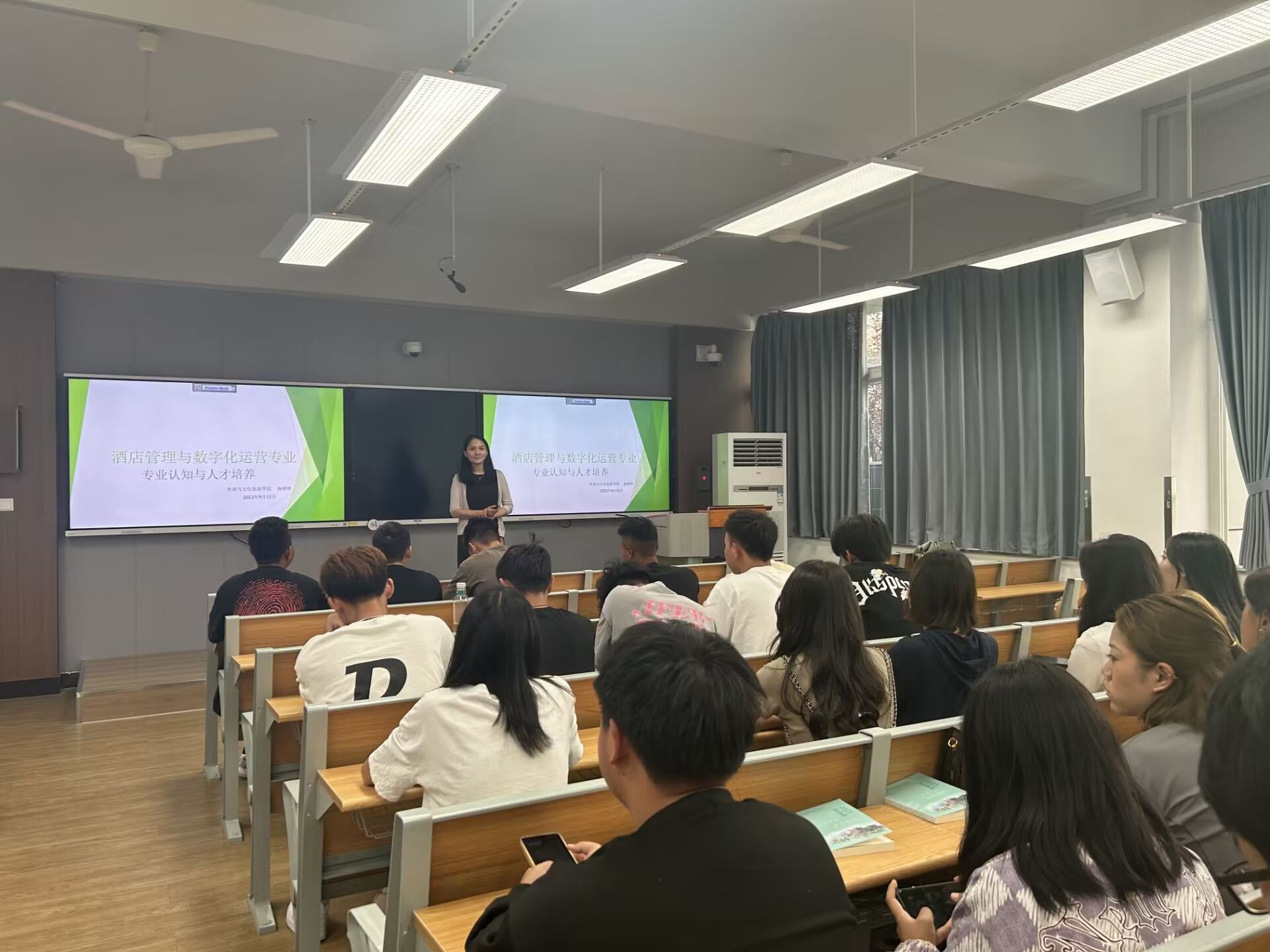 9月12日下午,酒店管理与数字化运营专业对2023级新生开展了“入学教育”,由教研室主任杨婷婷主持,从酒店行业认知、酒店行业发展态势、酒店行业从业优势、专业培养体系、师资力量等方面给学生做了详细的介绍。还特别邀请到了校企合作方华住酒店集团金牛美居丁幸德总经理介绍了行业现状,并和同学们开展了趣味互动。